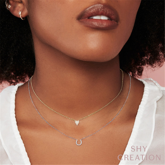 Shy Creation Yellow Gold Pave Set Mini Diamond Heart Pendant Necklace