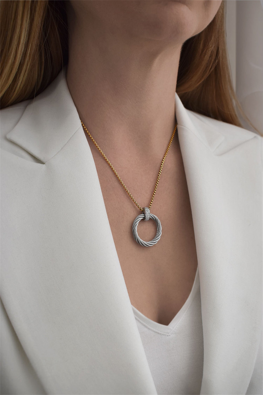 ALOR Grey and Yellow Cable Diamond Pendant Necklace