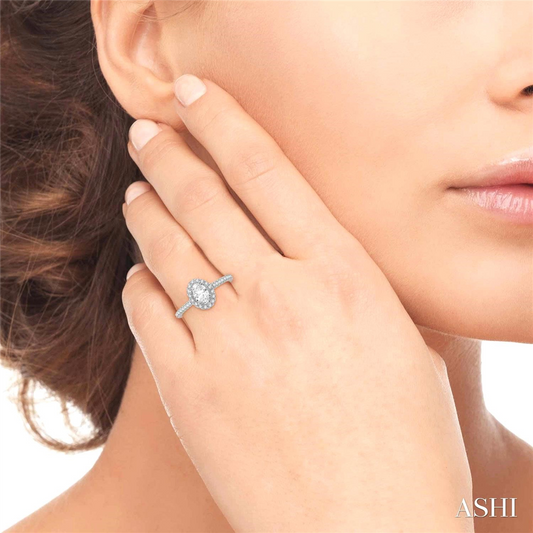 14K White Gold Diamond Halo Engagement Ring