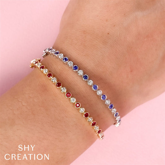 Shy Creation Bezel Set Blue Sapphire and Diamond Bracelet