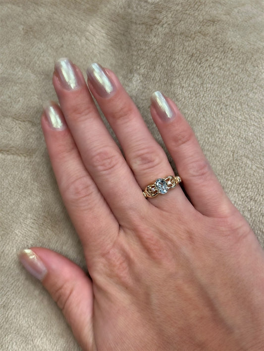 Estate 14K Yellow Gold Oval Aquamarine And Round Diamond Ring