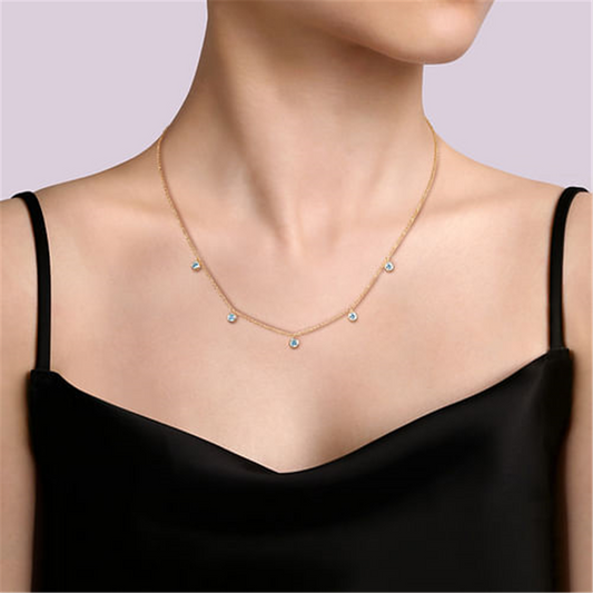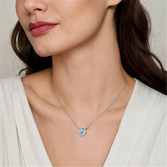 Gabriel Sterling Silver Aquamarine And Diamond Pendant Necklace