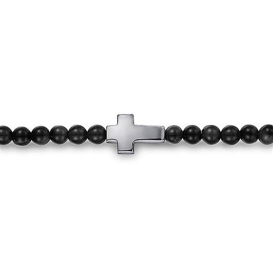 Gabriel Sterling Silver Cross & Onyx Beaded Bracelet