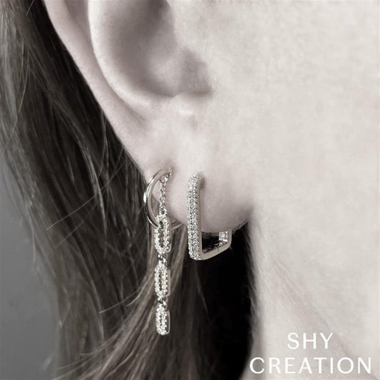 Shy Creation White Gold Diamond In-And-Out Rectangle Hoop Earring