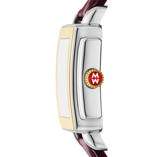 Michele Deco Sport Mid Gold-Plated Dark Cherry Leather Watch