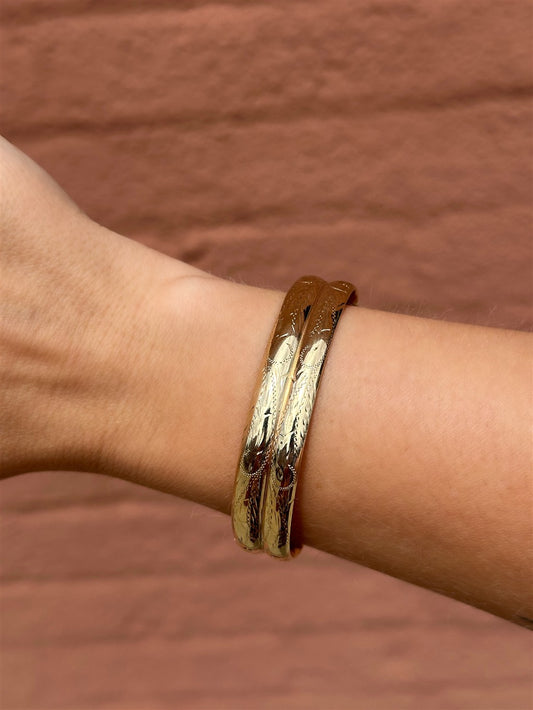 Estate 14K Gold Double Row Bangle Bracelet with Design