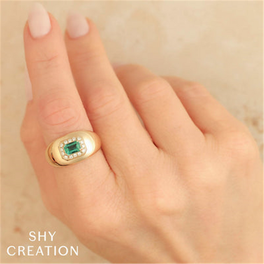 Shy Creation Diamond & Emerald Ring