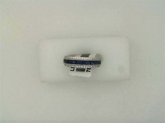 Simon G. 18K White Gold Princess Cut Blue Sapphire & Round Diamond Band