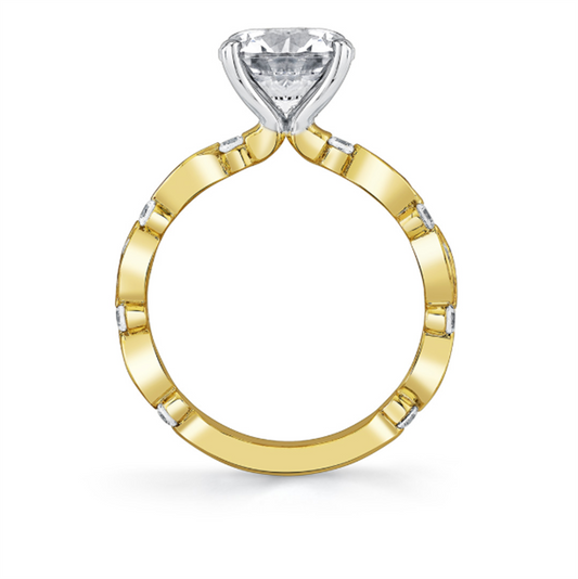 Sylvie 14K Two Tone Round Diamond Semi Mount with Channel Set Diamonds