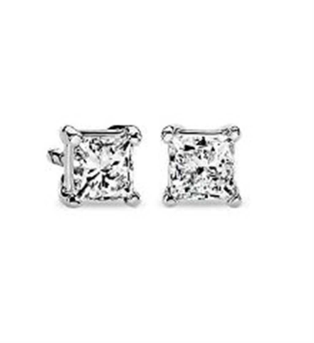 A beautiful pair of 4-prong stud earrings crafted in 14K white gold featuring 0.50Cts of Princess cut diamonds.