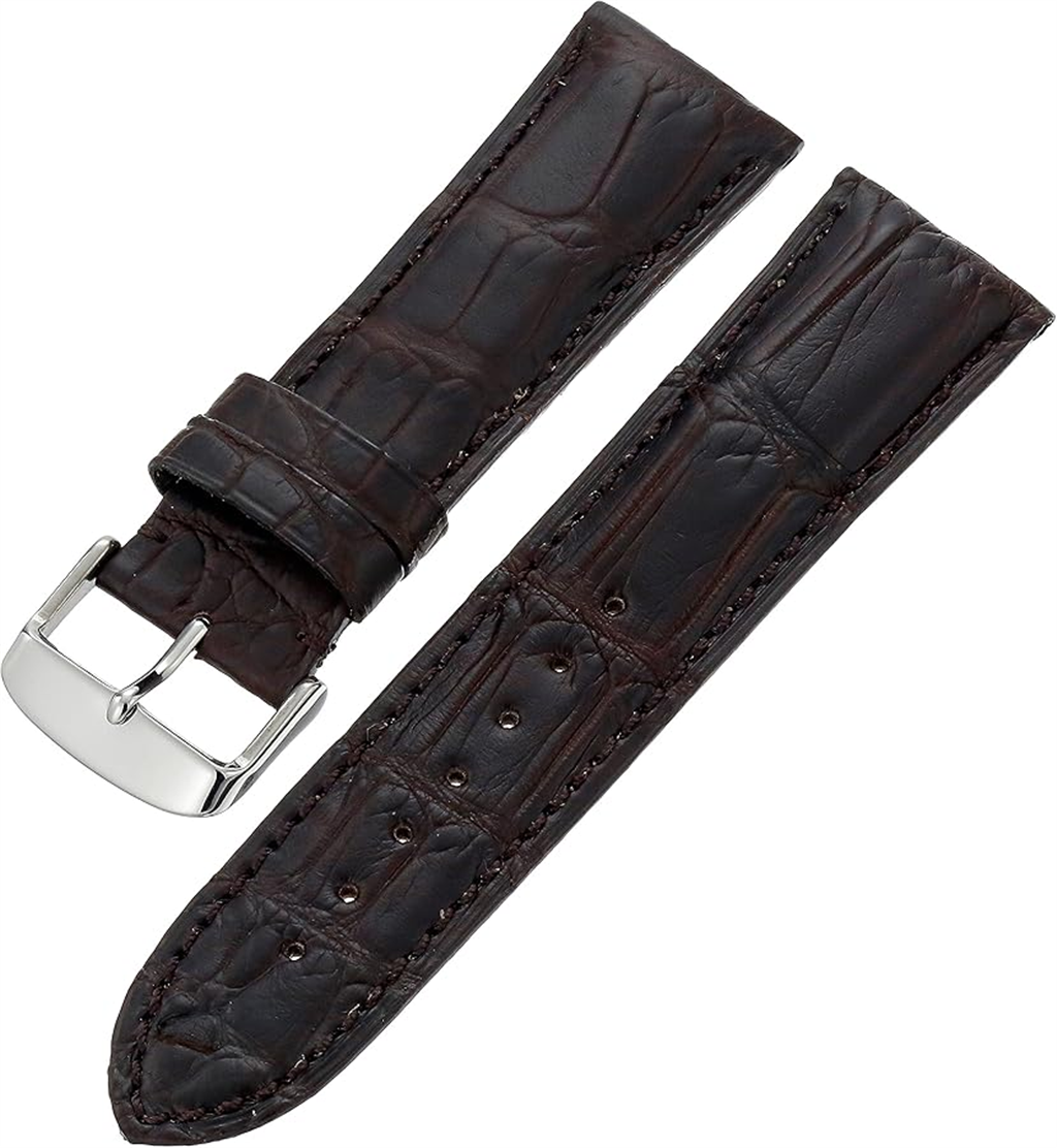 22Mm Genuine Calfskin Black Leather Wacth Strap with Regular White Clasp