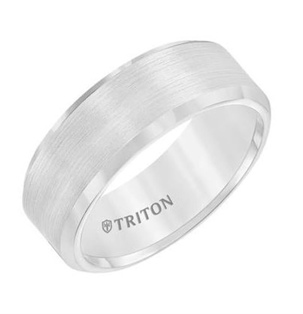 8 Millimeter Grey Tungsten Carbide Wedding Band With Beveled Edge Satin, Size 10