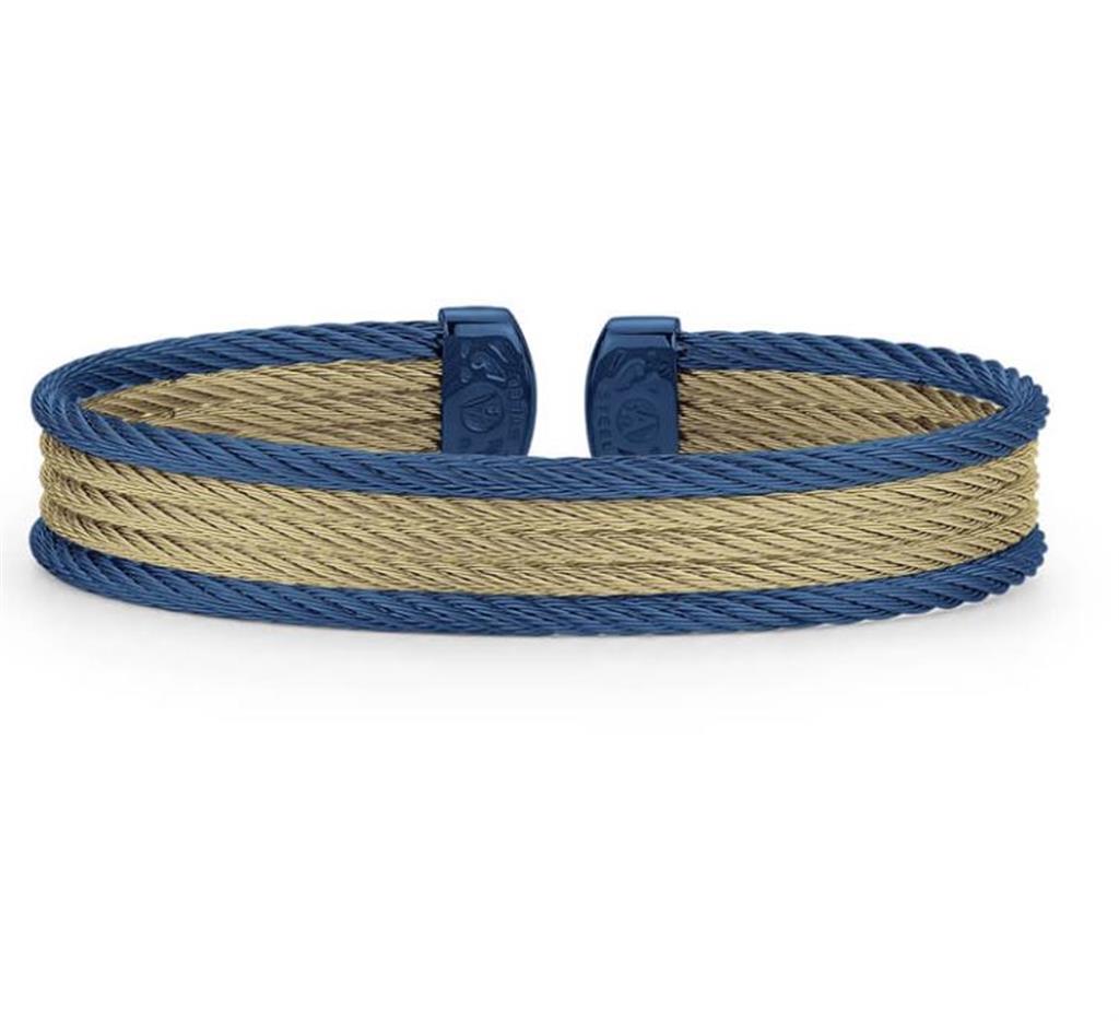 Grey & Blue Pvd Cable Wire Cuff. Length 6.25"