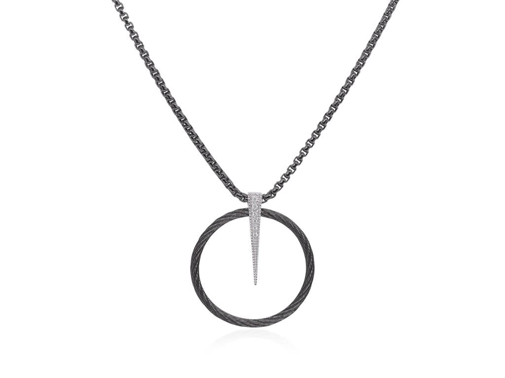 ALOR Stainless Steel Black Pvd Cable Wire, 0.05cts Diamond Spear Necklace Pendant. Length 18.5".