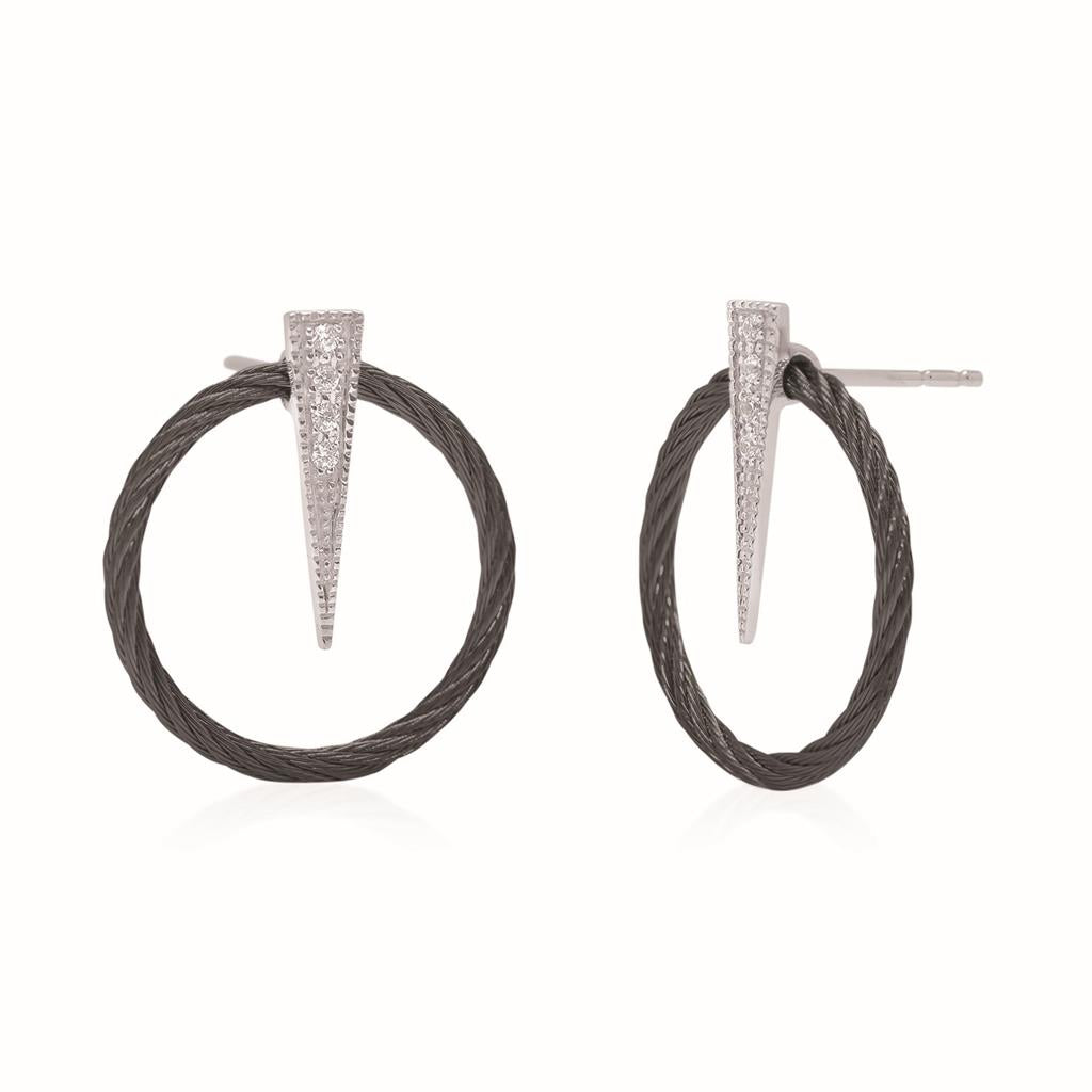 Alor Cable Wire Black Open Circle Earrings w/ Diamond Accent Spike