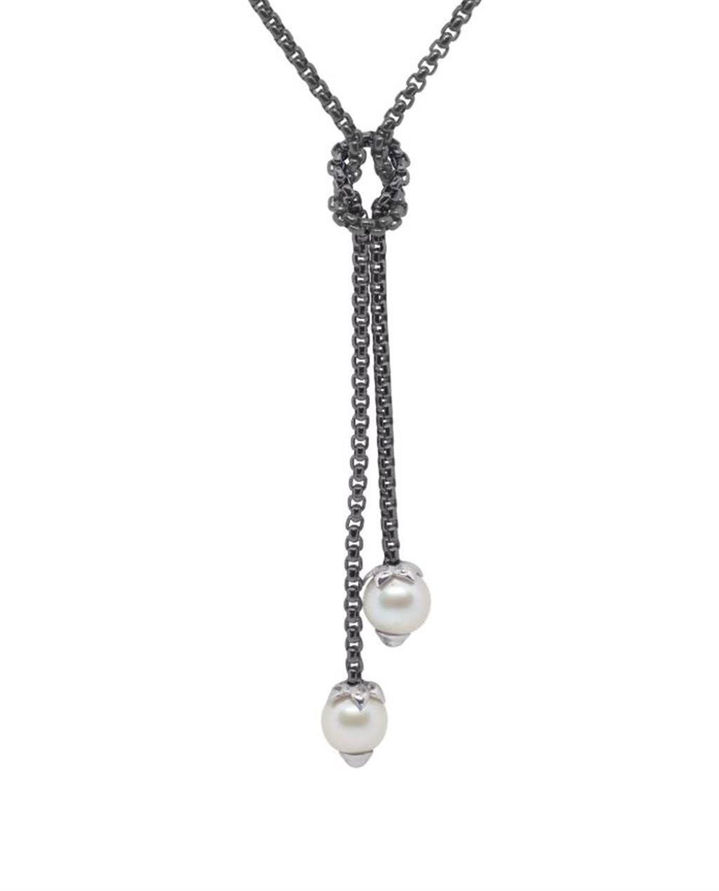 Alor Black Chain 8Mm Freshwater Pearl Knotted Lariat Necklace