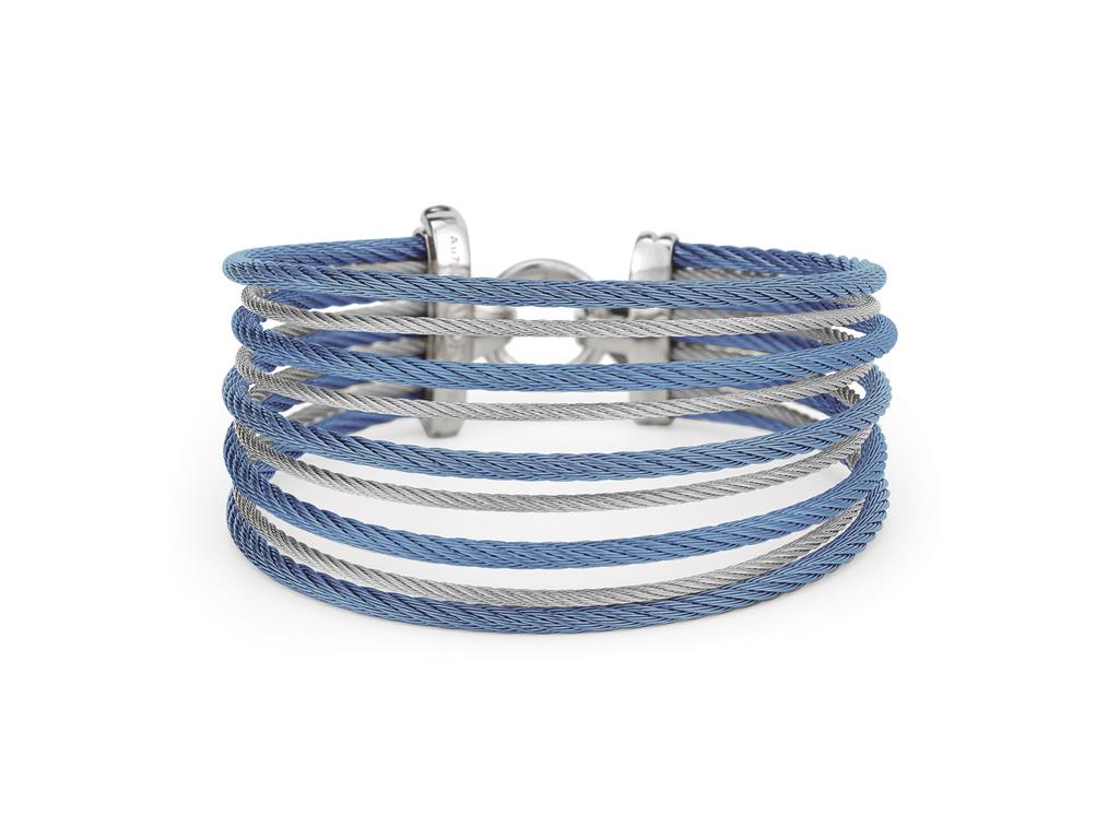 Alor Carribean Blue And Grey Stainless Steel Cable Wire Large Wrap Bracelet.
