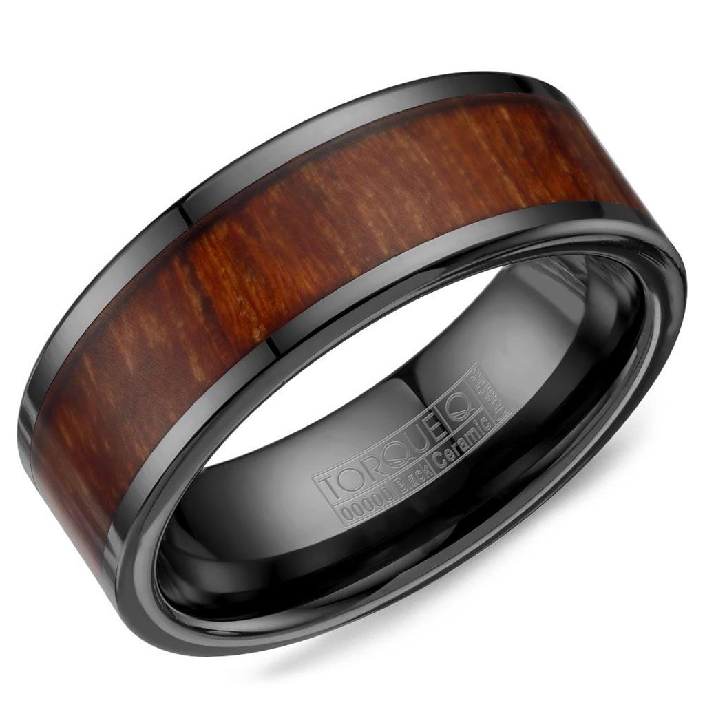 From the Crown Ring Sport Collection, this men’s comfort fit domed band is crafted from black ceramic and wood inlay with a sleek high polish finish. This band is available for viewing in store or by special order.