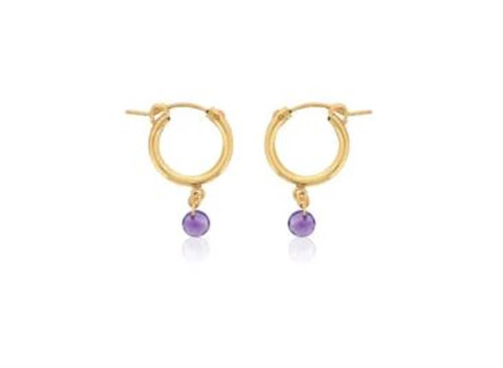 Dee Berkley Gold Filled Small Chunky Hoop Earrings With Amethyst Gemstone Drop.