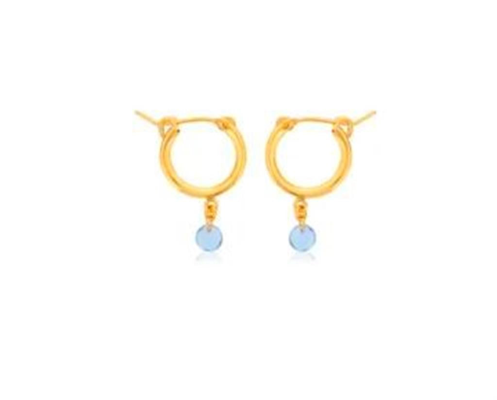 Dee Berkley Gold Filled Small Chunky Hoop Earrings With Blue Topaz Gemstone Drop.