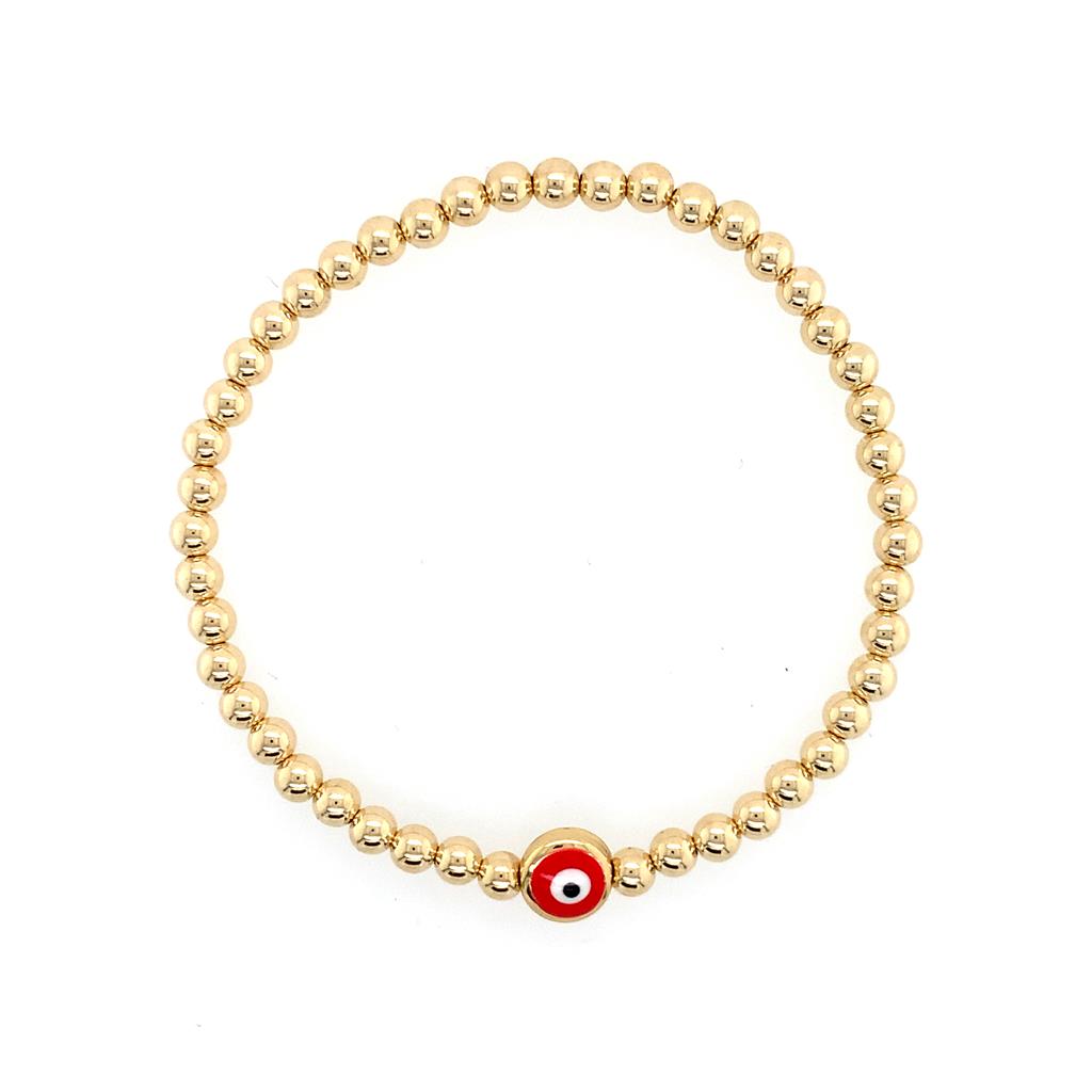 Dee Berkley 4Mm Gold Filled Beaded Bracelet with Red Evil Eye Connector Charm
