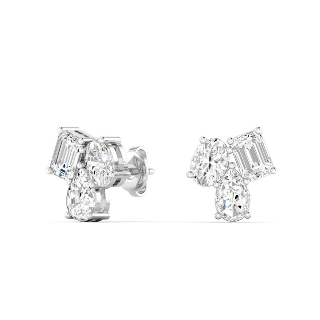 Everlee 14k White Gold, Multi-Shape Cluster, Lab Dia Earrings