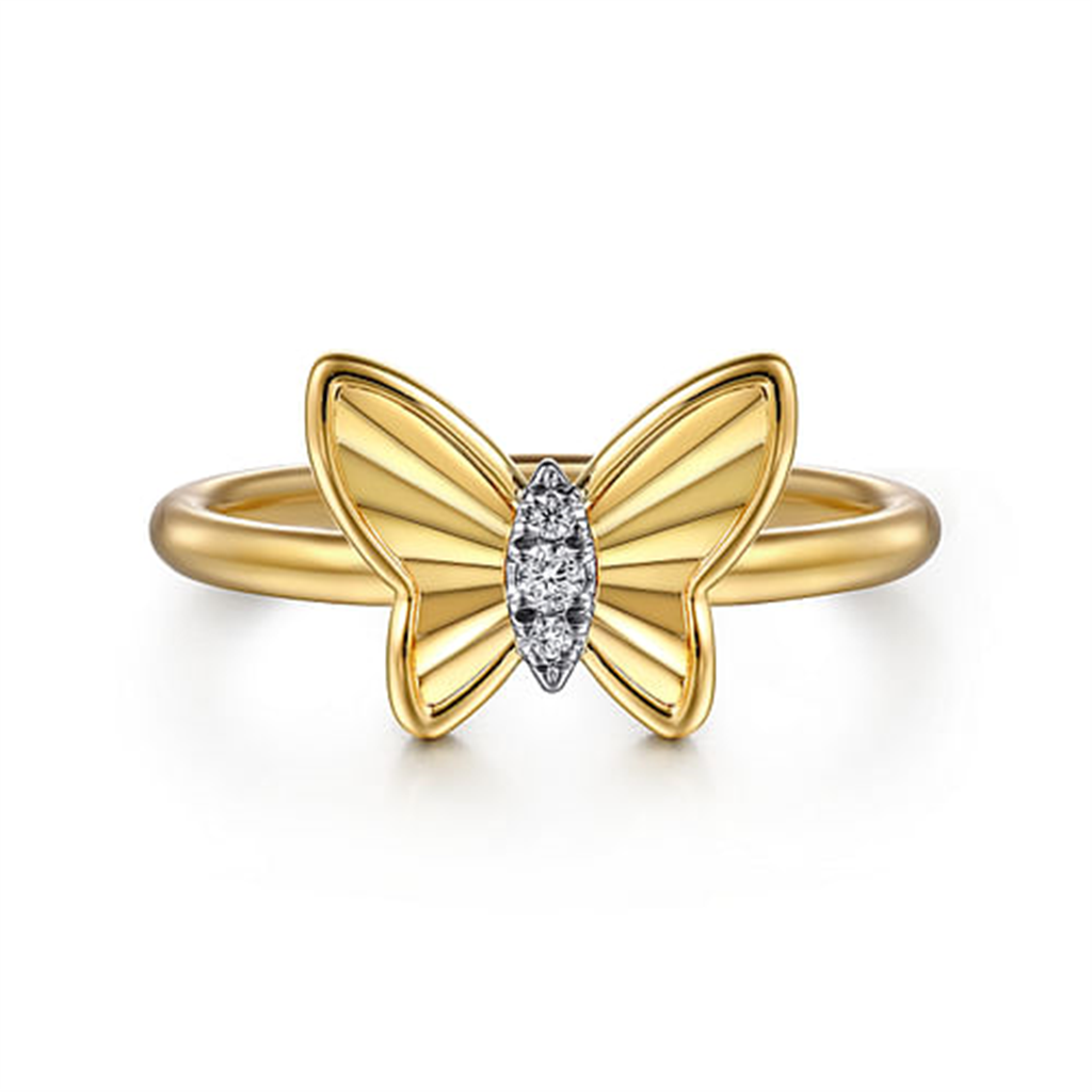 Gabriel 14K Yellow Gold Diamond Cut Butterfly Ring with Diamonds