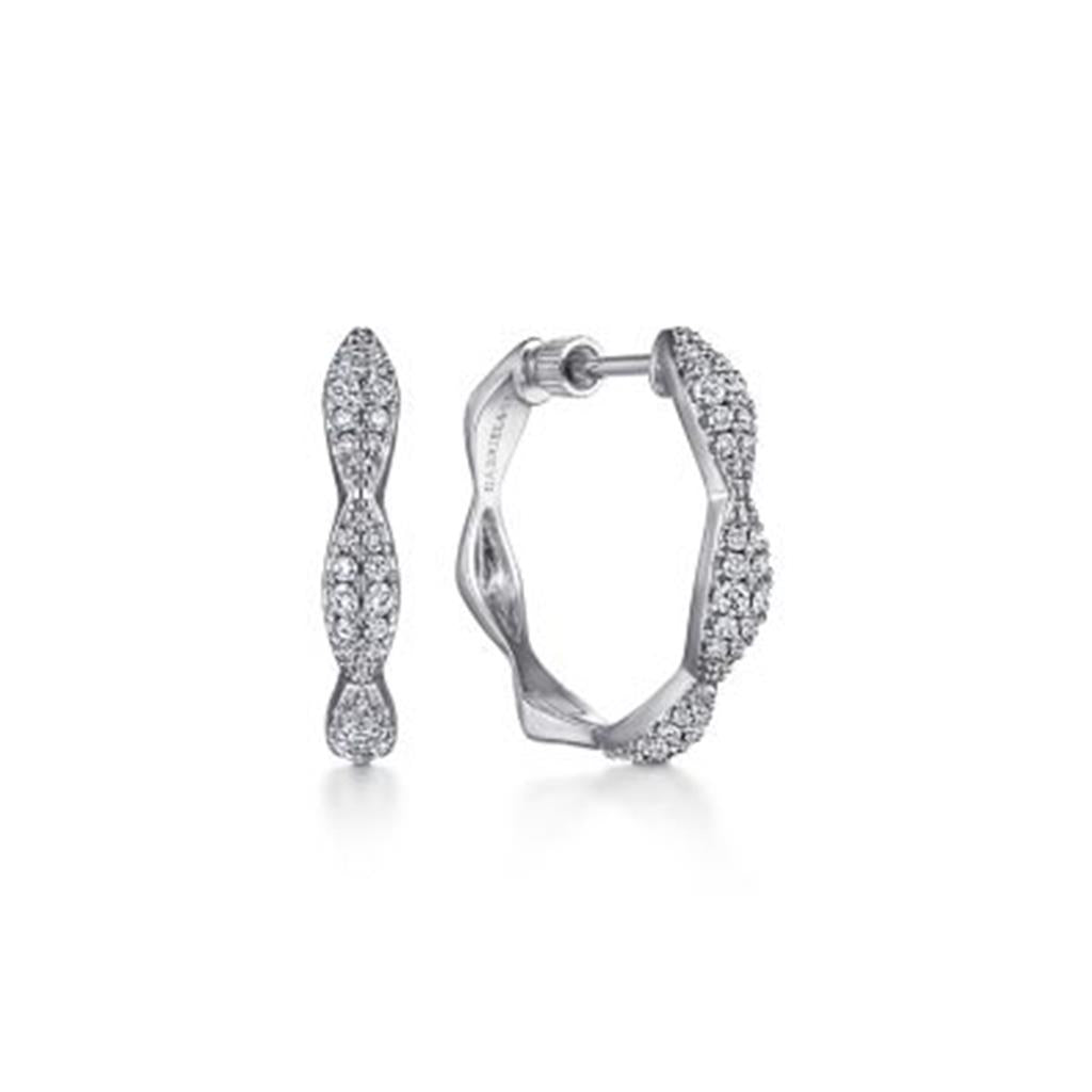 14K White Gold 20Mm Classic Diamond Hoop Earrings, 60Rds-0.44Cts.