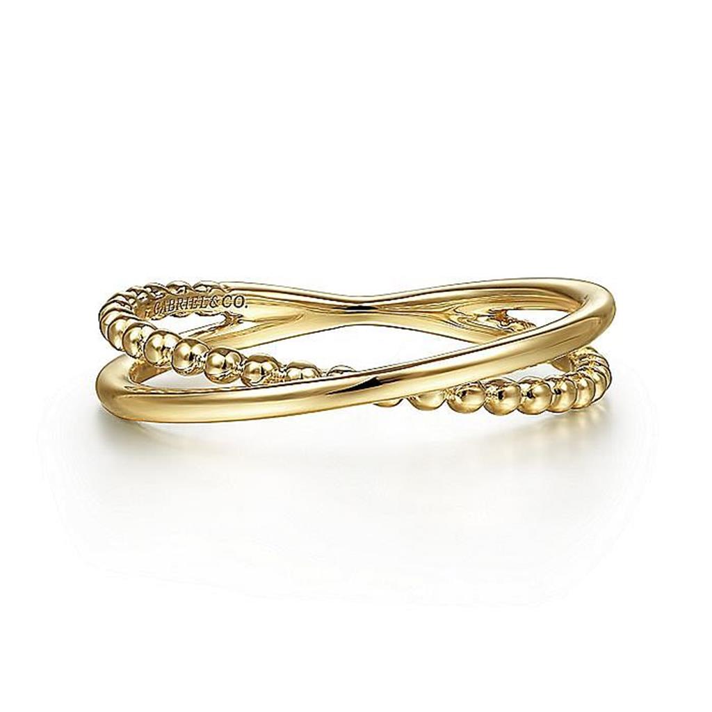 This fashionable Gabriel & Co14K Yellow Diamond & Bujukan Beaded Criss-Cross ring shows simplicity can be luxurious too!