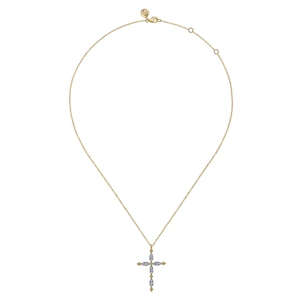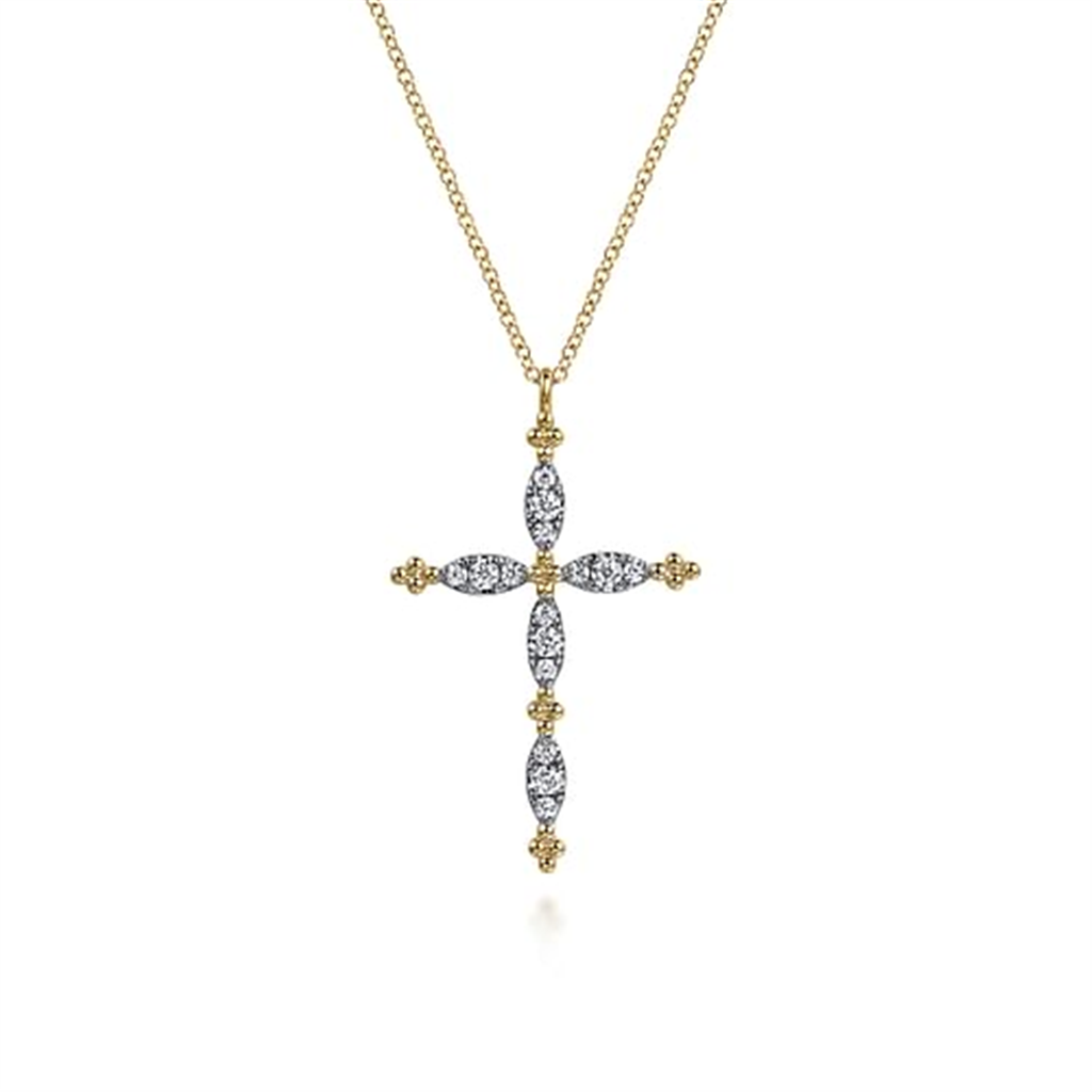 Gabriel & Co. 14K Yellow Gold Bujukan Diamond Cross Pendant Necklace