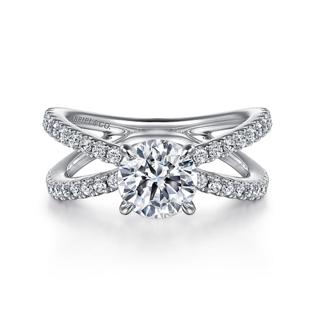 Minimally Embellished, This Contemporary Ring Spotlights Pure Sparkle With 0.52Cts Of Accent Diamonds. The Precious Stones Encrust The Upper Half Of An Exemplary Split Shank Constructed In 14K White Gold. Against This Streamlined Backdrop, Your 1.5Ct Round Center Stone Takes Center Stage.