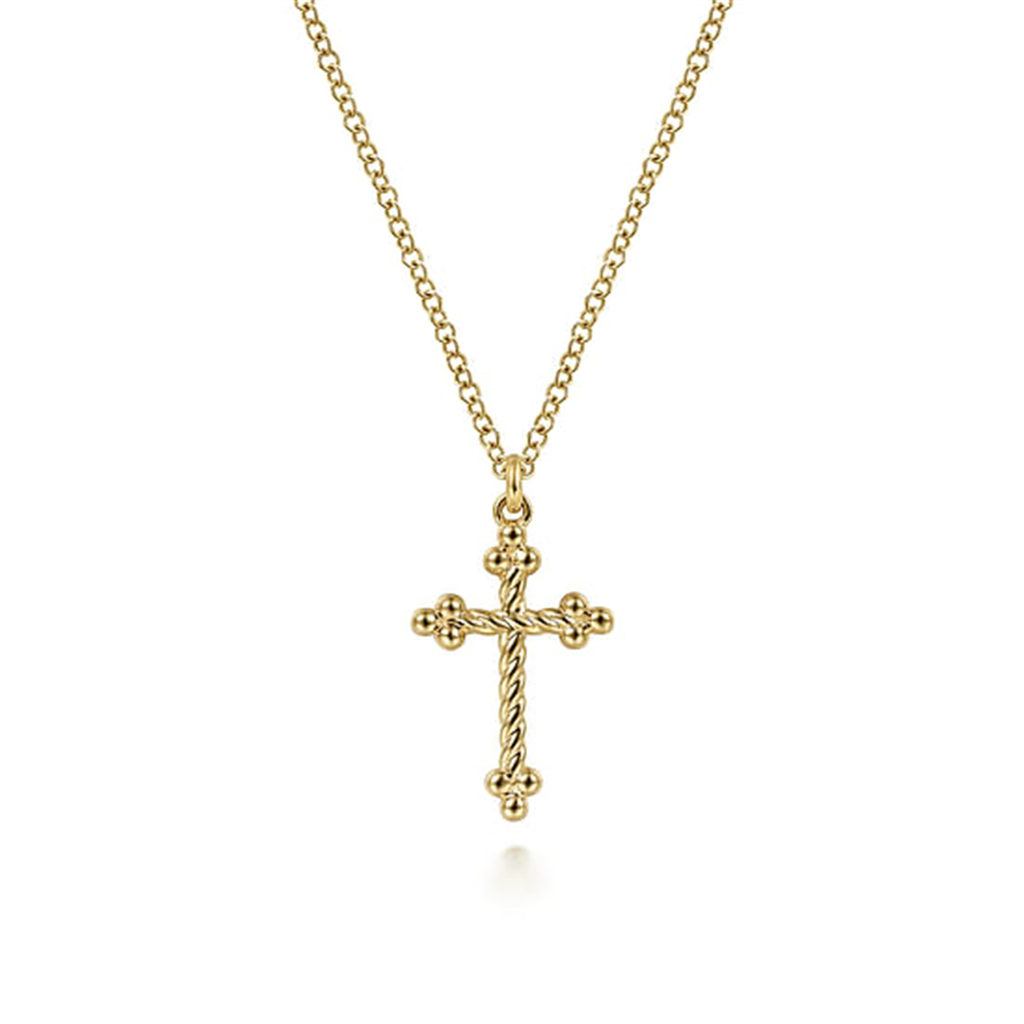 Gabriel 14K Yellow Gold Bujukan Collection Twisted Rope Cross Pendant Necklace with a 17.5 Inch Adjustable Chain