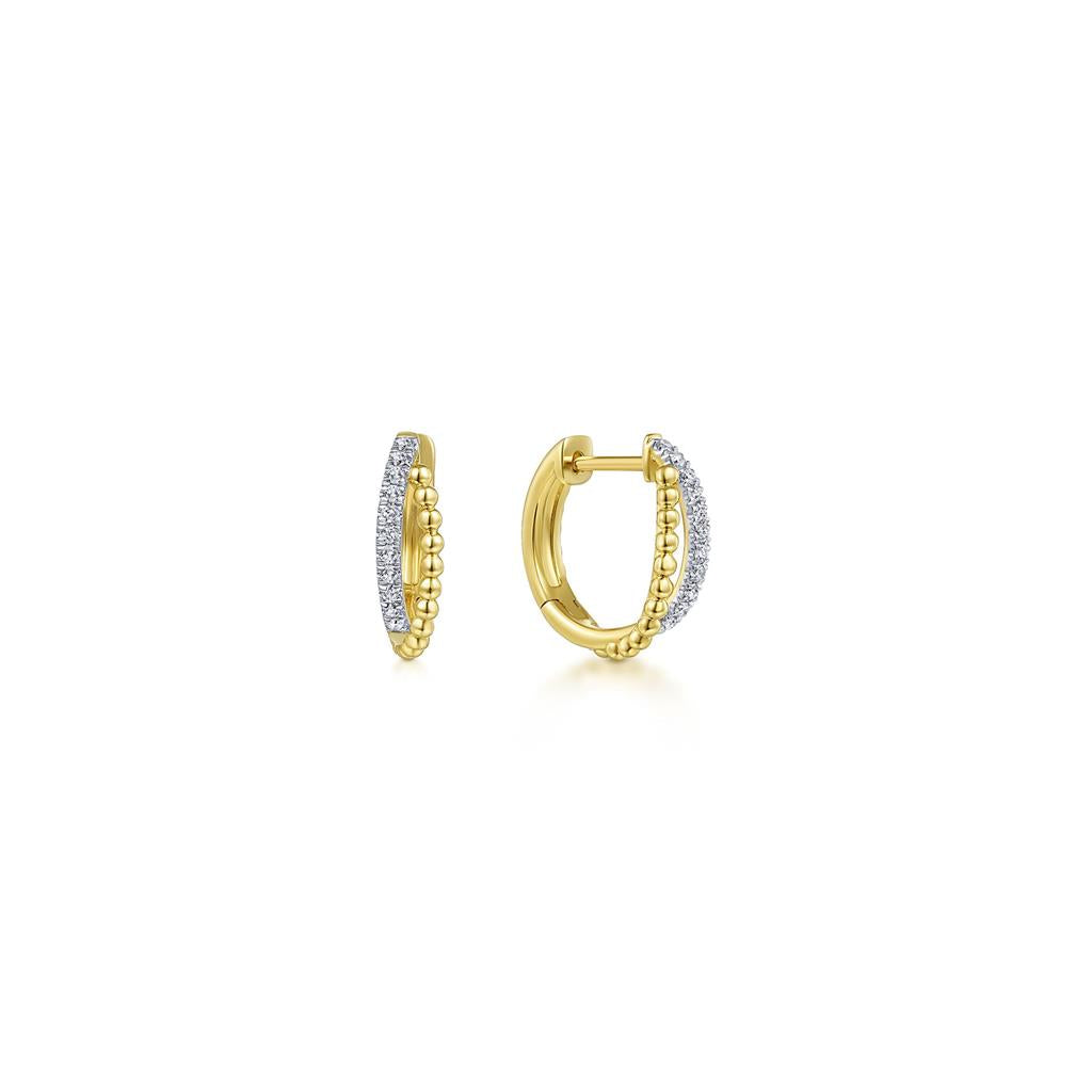 Gabriel Two Tone Twisted Diamond & Beaded Huggies