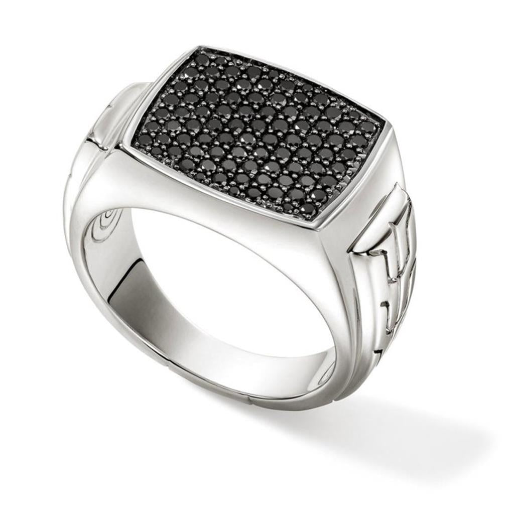 John Hardy Id Silver Signet Ring With Treated Black Sapphire