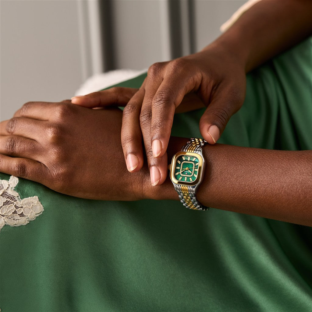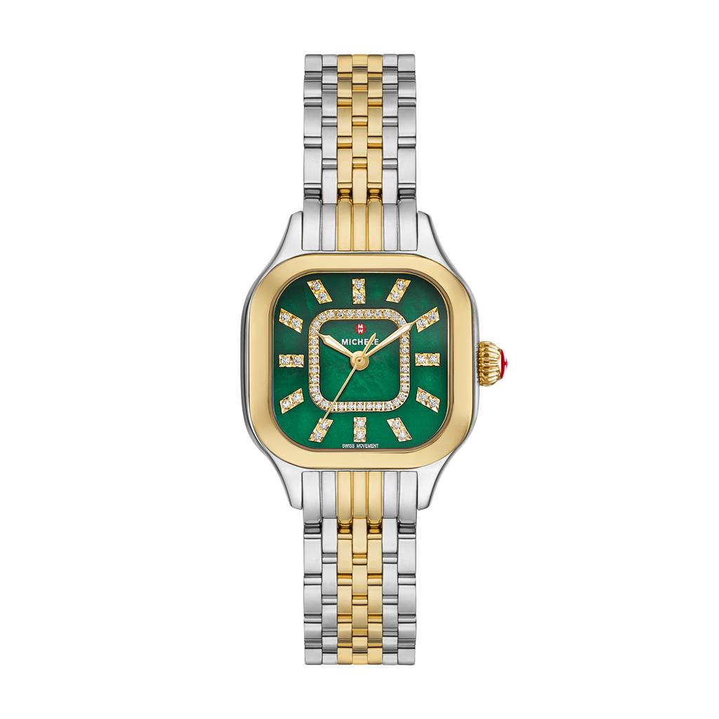 Michele Meggie 29Mm Two Tone Stainless Steel and 18K Plated Green Mother of Pearl Dial