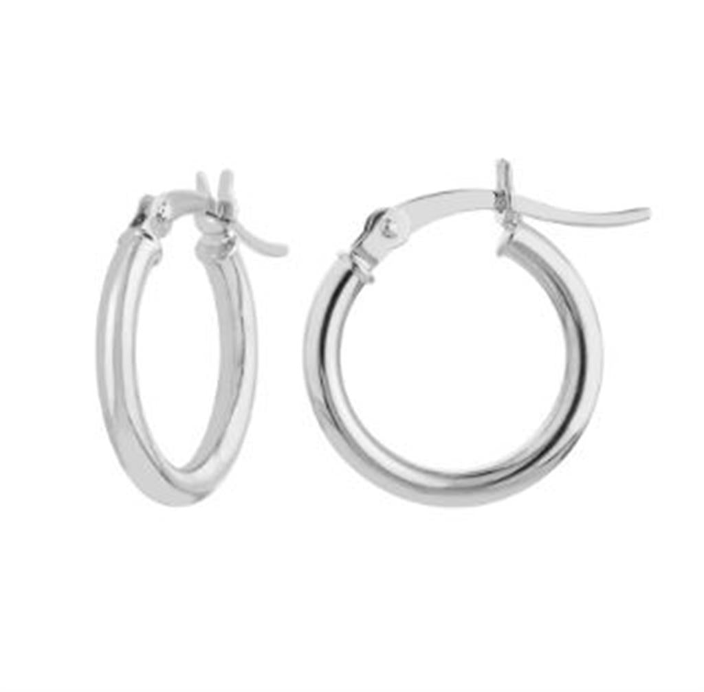 14K White Gold 2X15mm Round Tube Polished Hoop Earrings