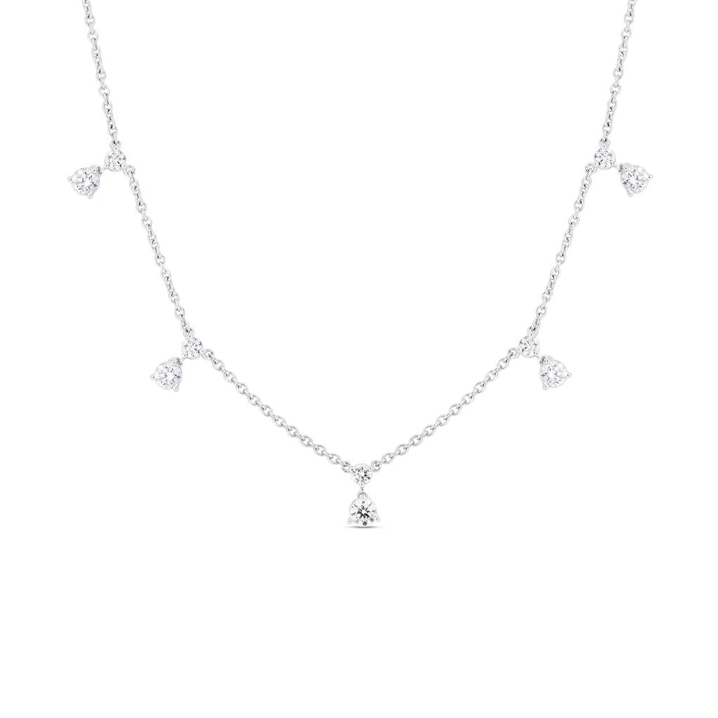 This necklace is crafted in 18K White Gold and features stations of brilliant round diamonds. An elegant yet classic design perfect for every occasion.