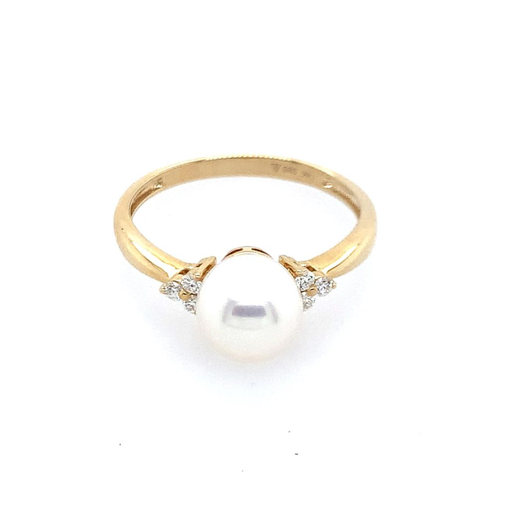 This design is crafted in 14 karat white gold and features a freshwater pearl accented by a halo of brilliant round diamonds. This style makes for an elegant and classic look perfect for any special day.