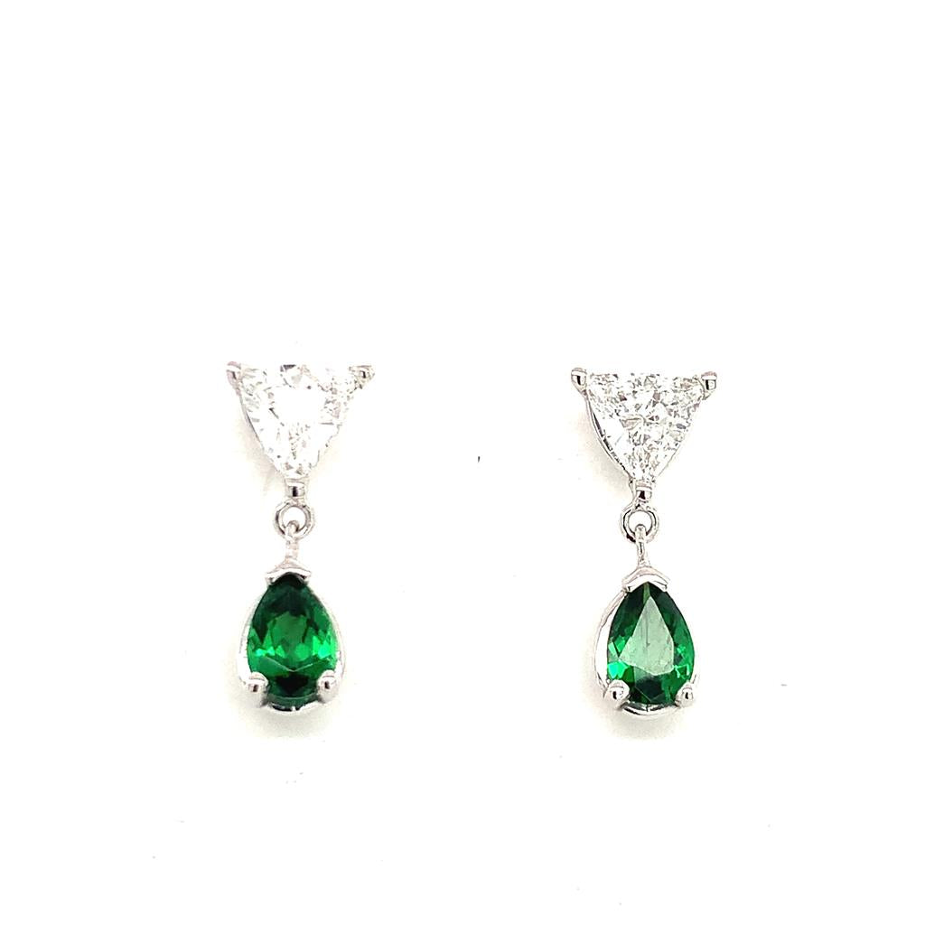 Rollands Design 14K White Gold Pear Green Tsavorite Garnet & Diamonds Earrings Garnet-.89Cts Diamond-.84Cts.