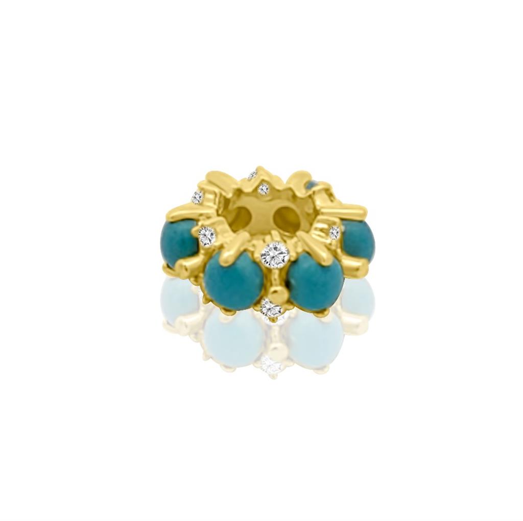 Rolland's Designs 14K Yellow Gold Turquoise & Diamond Charm 6Turquoise-.67, 12Diamonds-.11Cts.