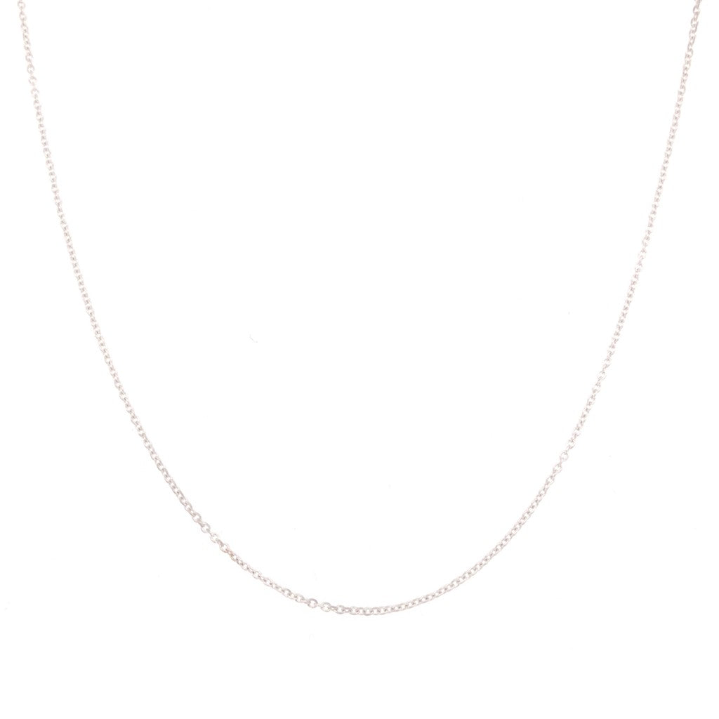 This rolo chain is crafted in 14k white gold and is 18" in length