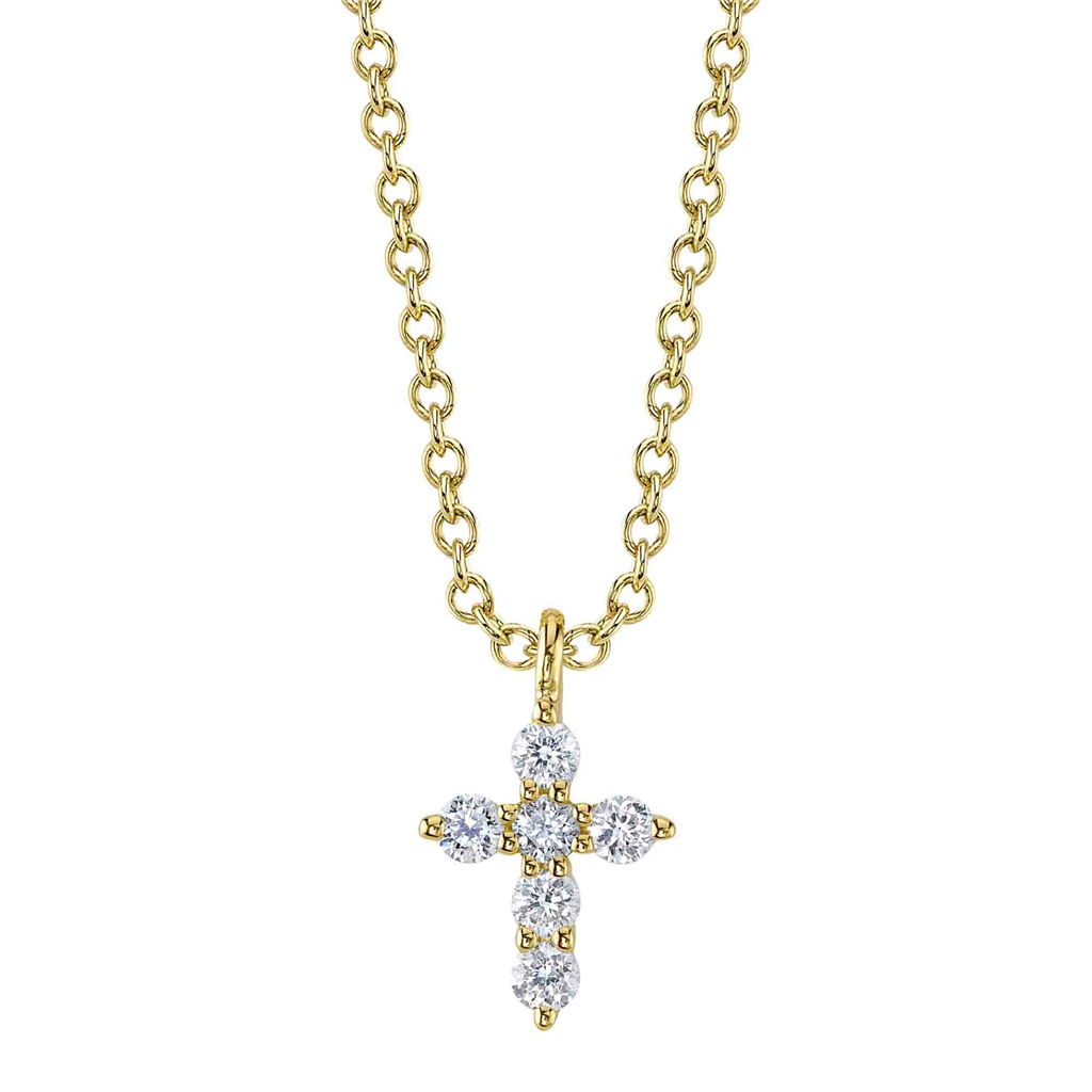 Shy 14K Yellow Gold Prong Set Diamond Cross Pendant Necklace.