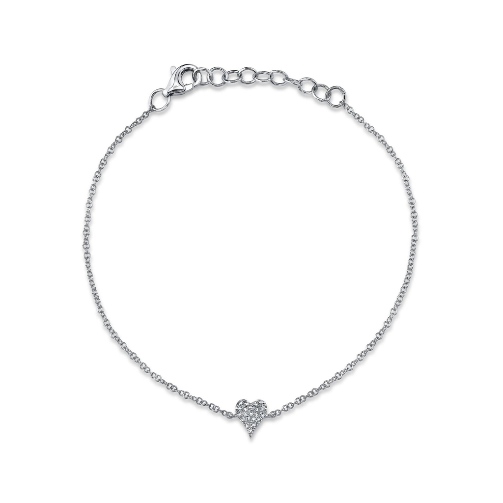 Shy Creation 14K White Gold Pave Set Diamond Tiny Heart Bracelet.