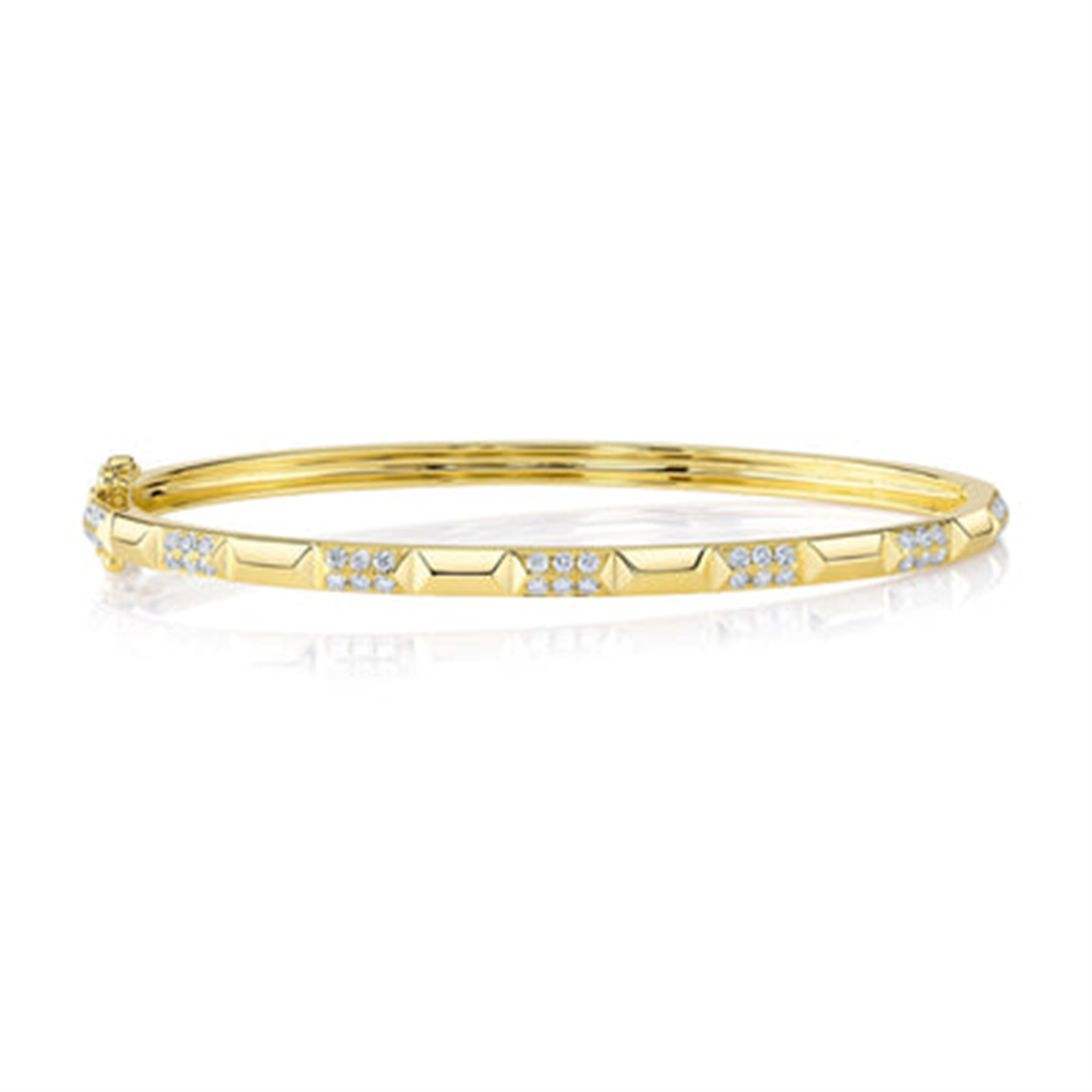 Shy Craetion Fine Jewelry 14K Yellow Gold, Geometric Cut Diamond Bangle Bracelet