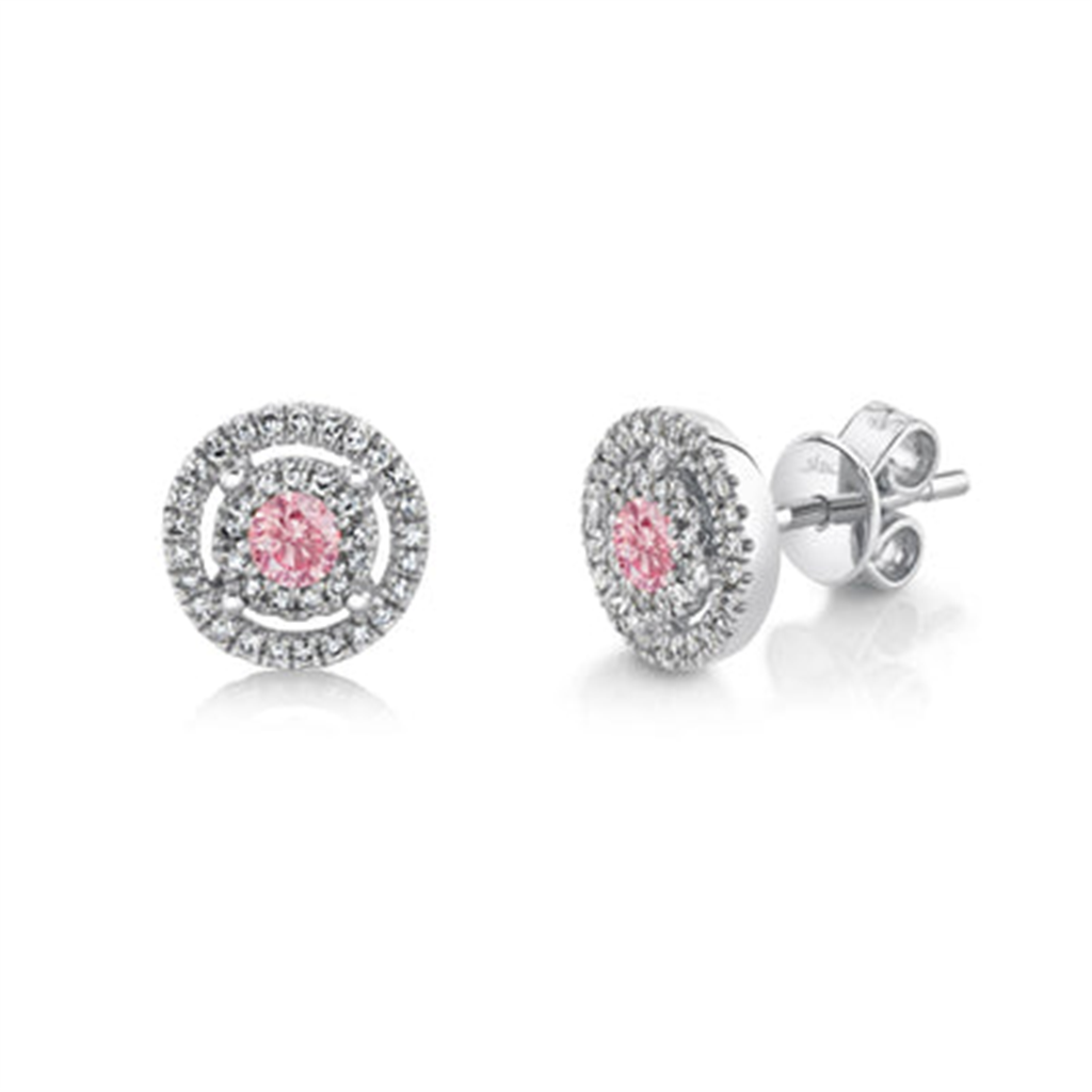 14K White Gold Blue Sapphire & Diamond Halo Earrings. 26Diamonds 0.08Cts, 0.28Cts In Sapphire.