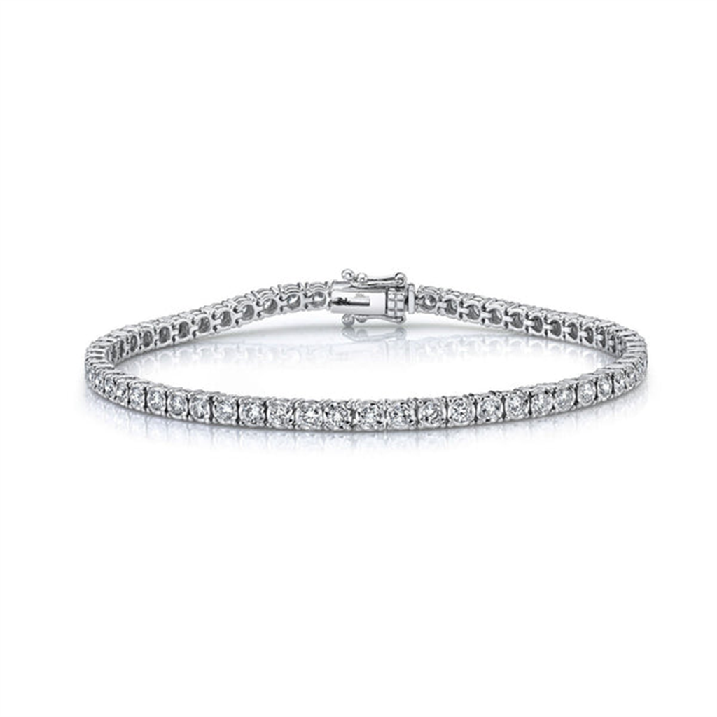 This diamond bracelet features 2.02 carats of genuine white round diamonds hand set in a 14k white gold tennis bracelet design. This bracelet is available for viewing in store or by special order in 14k yellow gold or rose gold.