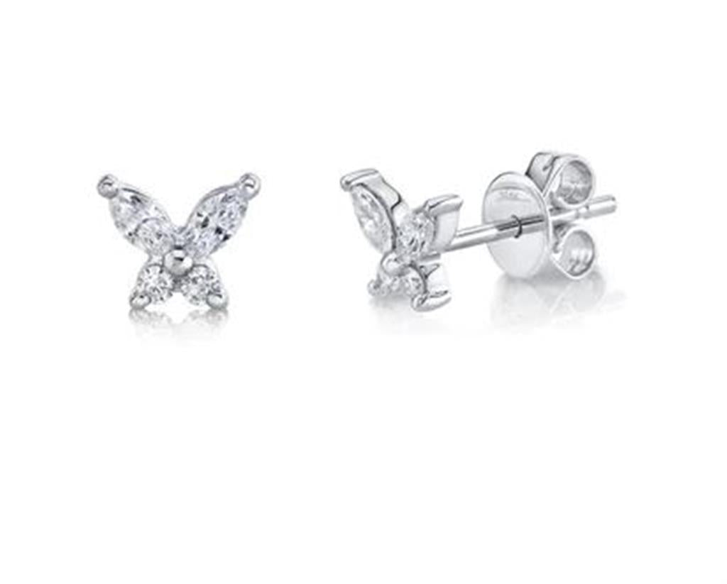 14K White Gold Diamond Butterlfy Shape Stud Earrings, 0.29Cts