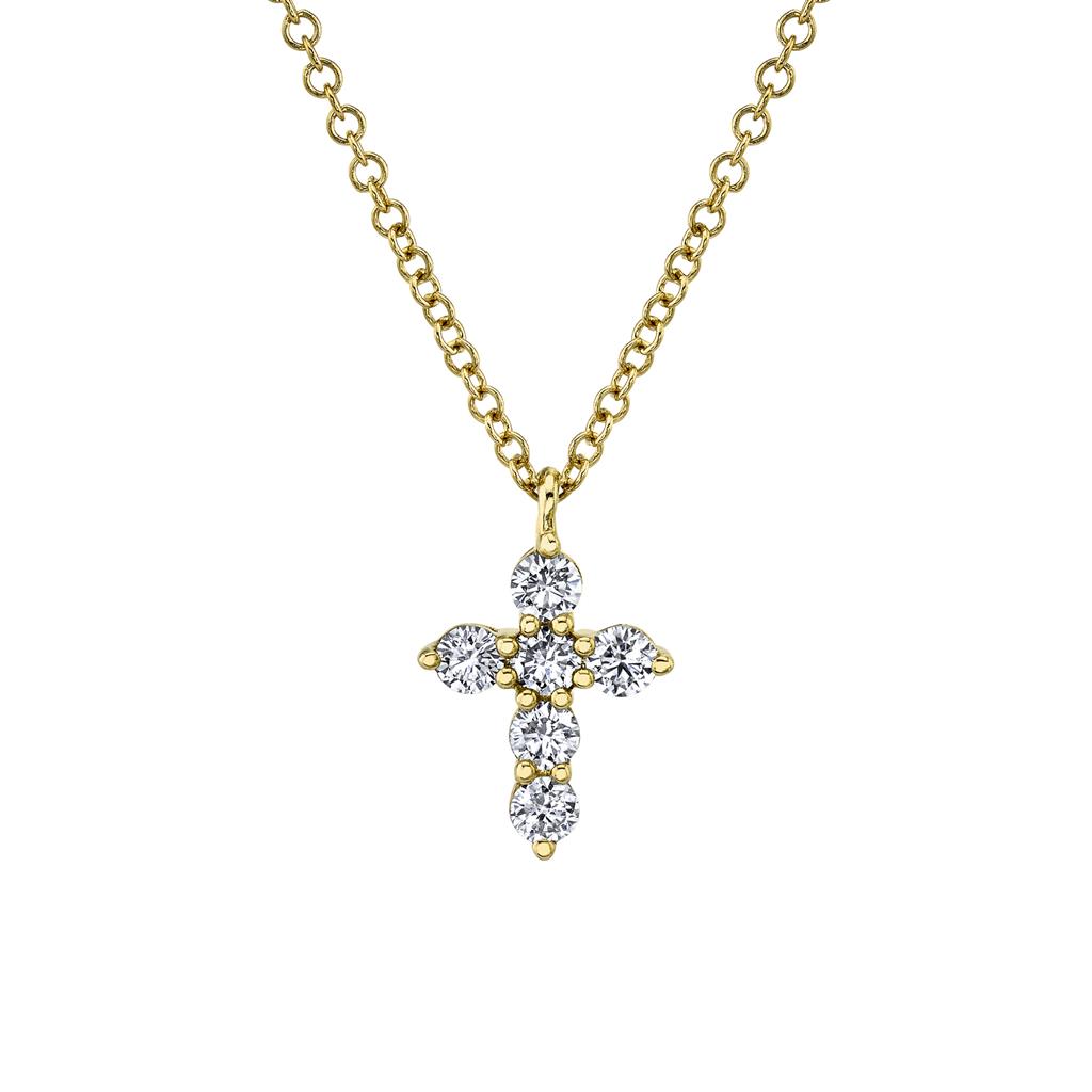 Shy Creation 14K Yellow Gold Diamond Cross Necklace With Adjustable Chain.