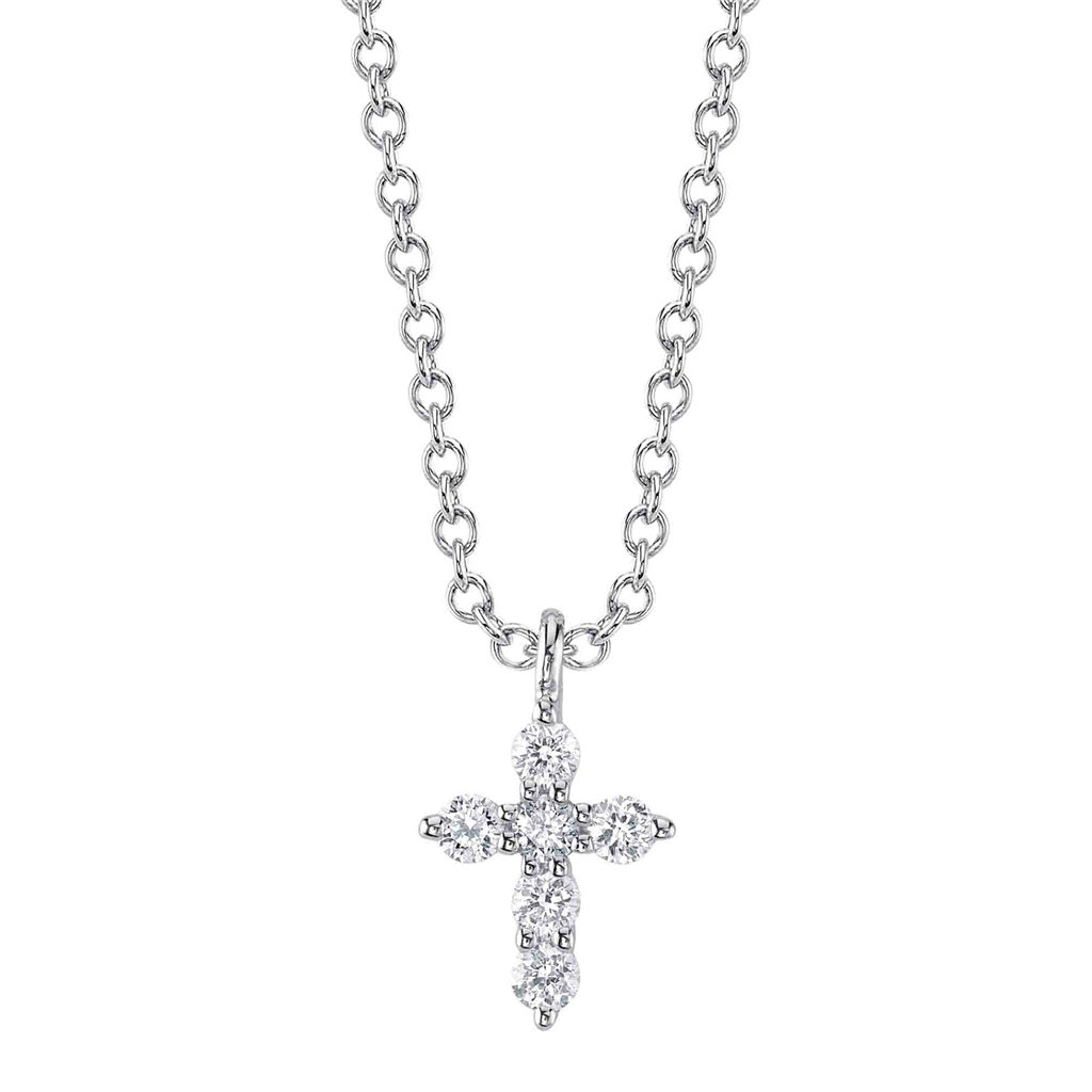 14k White Gold Prong Set Diamond Cross Pendant Necklace with Adjustable Chain .10Cts.