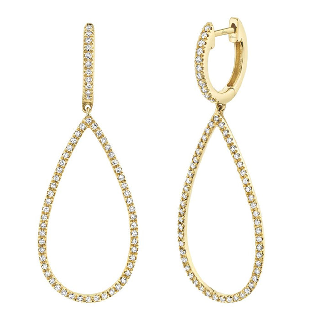14k Yellow Gold, Diamond Pear Shaped Drop Huggies